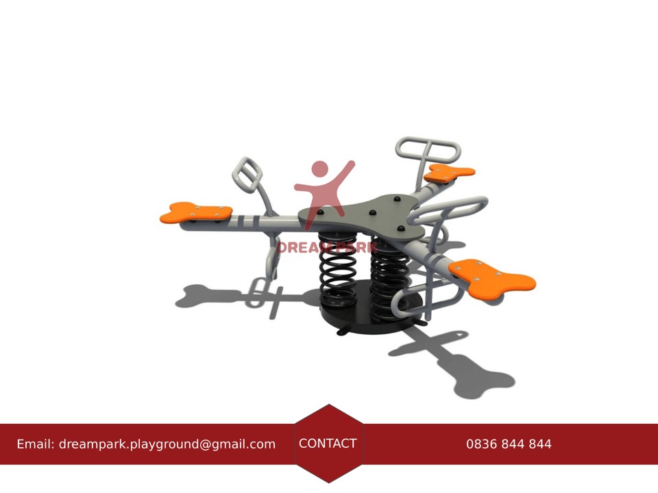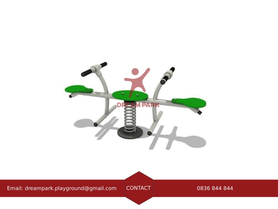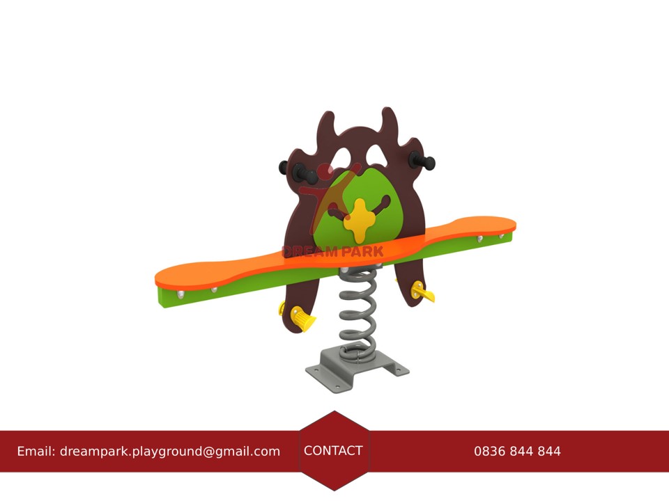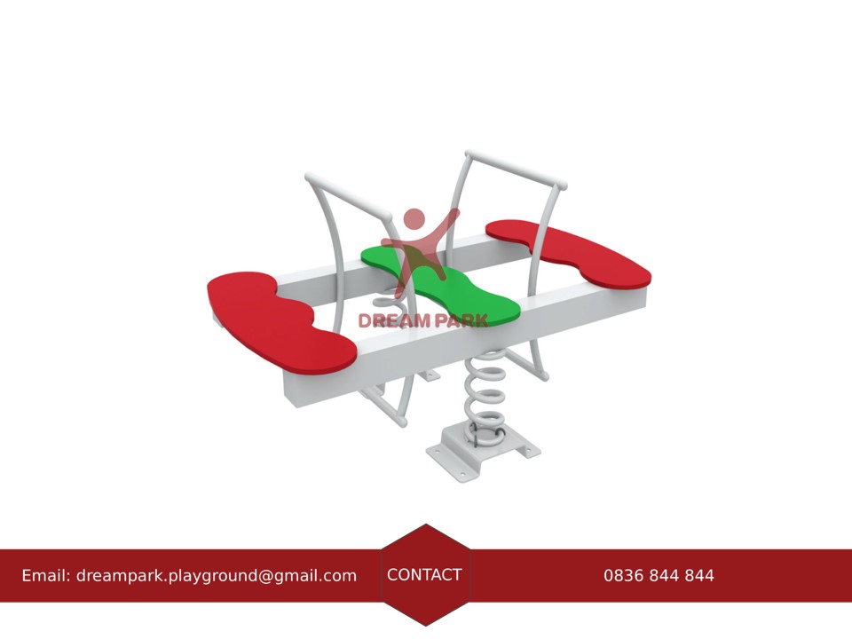 Tinh Năng: Khi ngồi lên và dùng lực đẩy, thiết bị sẽ đưa lên trên và xuống. Sẽ lắc lư nhẹ theo nhịp đàn hồi của lò xo, thiết bị thường được chơi từ 2 đến 4 trẻ em.